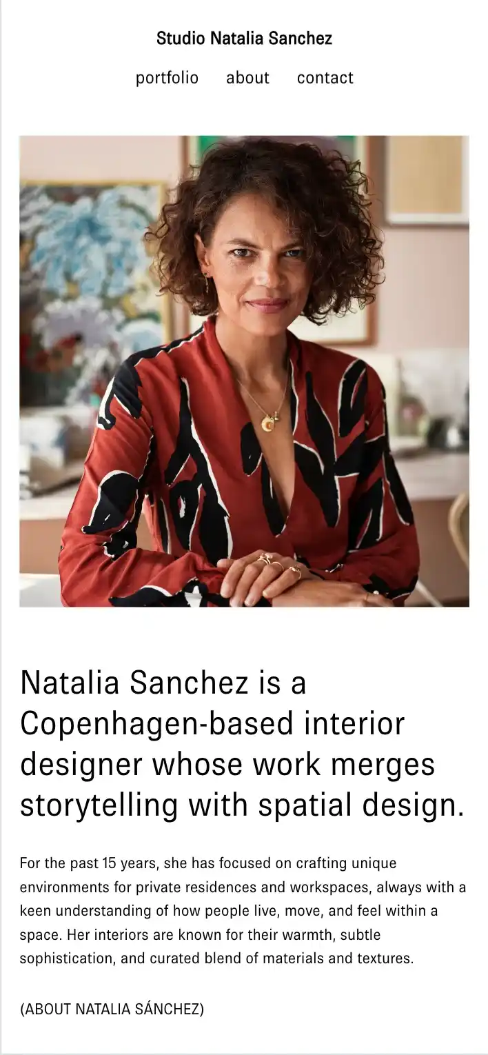 Natalia’s interiors are calm, confident, and deeply considered - her website needed to reflect that same clarity. The goal was to create a space that felt editorial rather than promotional.