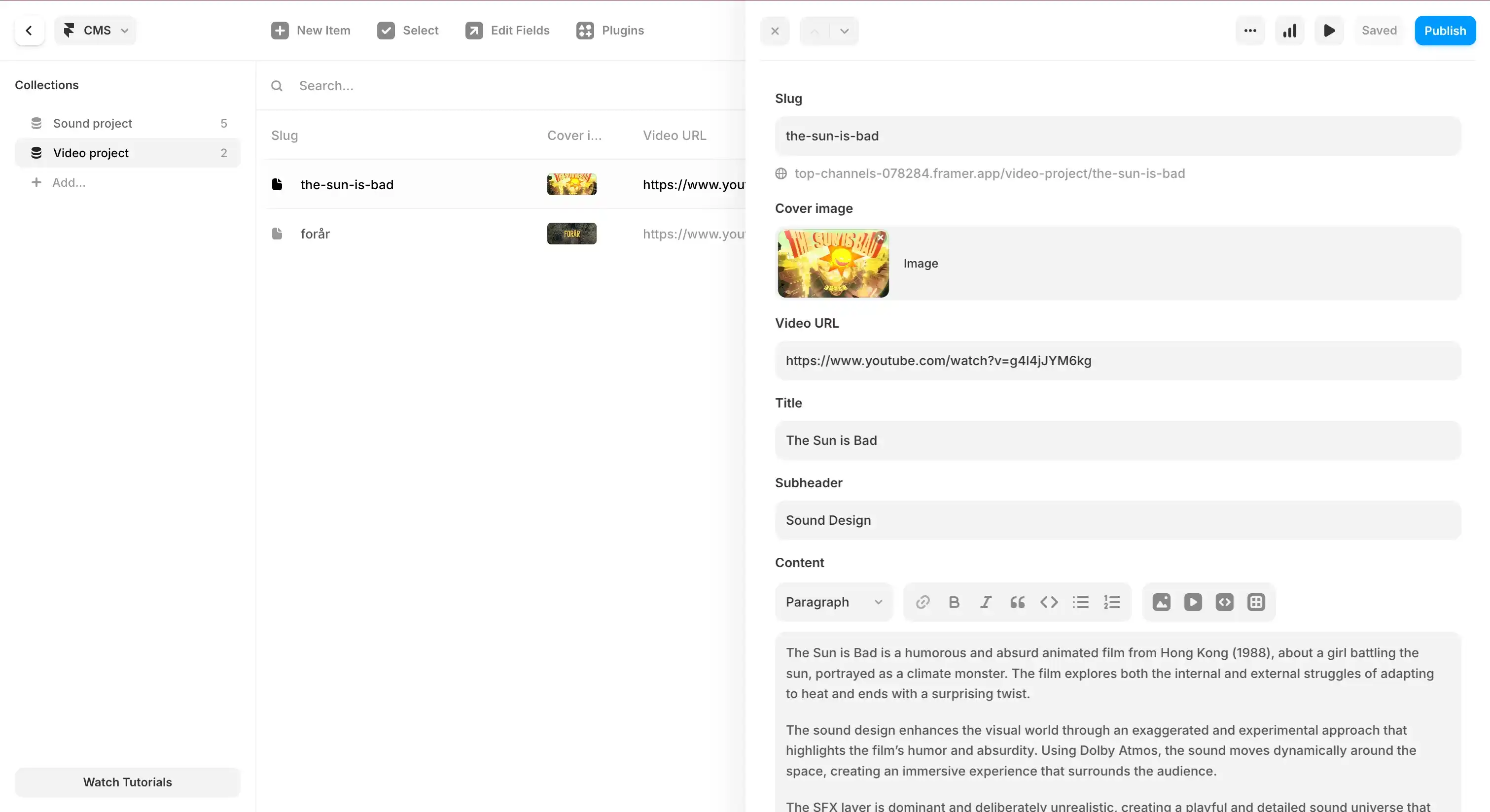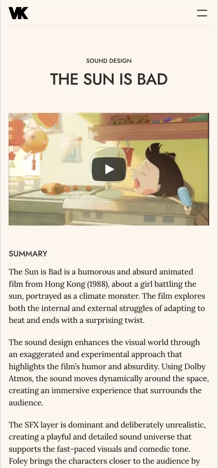 The CMS makes it effortless for Victor to add new projects — whether film, music, podcasts, or sound branding - with extensive editing options that give him full creative control. On top of that, I developed a custom audio player that integrates smoothly with both SoundCloud and Spotify, letting him showcase his work directly on the site without breaking the flow.